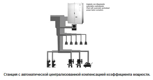 Теоретически, когда необходимо выбрать, где разместить емкостную мощность, самым приемлемым решением с технической точки зрения будет определить для каждой нагрузки свой конденсатор с компенсацией коэффициента мощности, который включался бы одновременно с машиной.