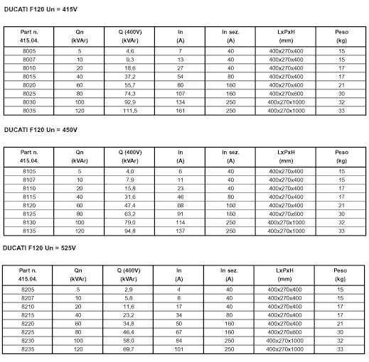 Устройства DUCATI F120 спроектированы и сконструированы для стационарного улучшения коэффициента мощности при практически постоянных пользовательских нагрузках.
