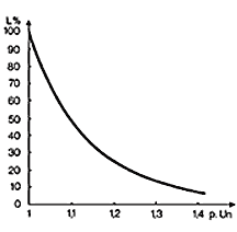 Рис. 4 Сокращение срока службы конденсатора в зависимости от коэффициента перенапряжения