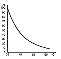 Рис. 5 Сокращение срока службы в зависимости от значения средней температуры (при