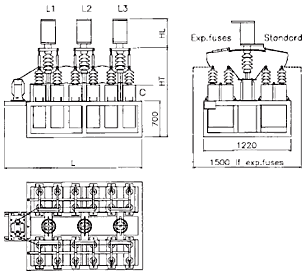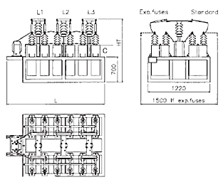 Также возможно исполнение со стреляющими предохранителями. В таком случае, размер L будет соответствовать размеру на рис. 17.3.1, высота увеличится примерно на 1/3.